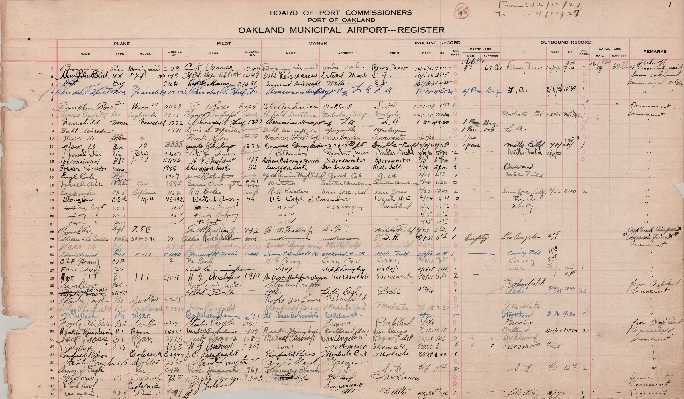 WCurrently, the Web site offers scans of the 318- page Oakland Airport Pilot Register, which documented flights by visiting pilots between September 1927 and August 1938.
